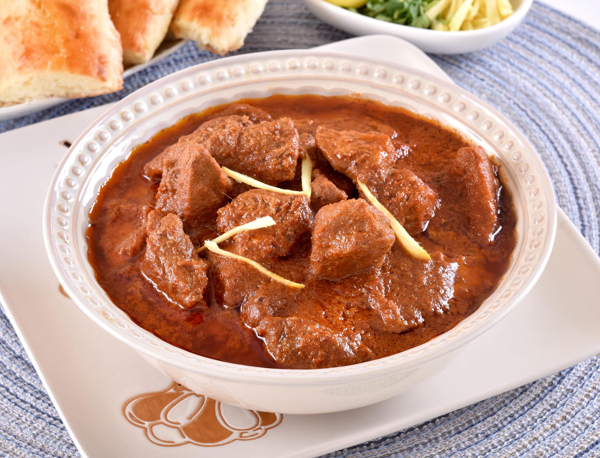 Boneless beef pieces cooked in a mild cashew cream and saffron sauce